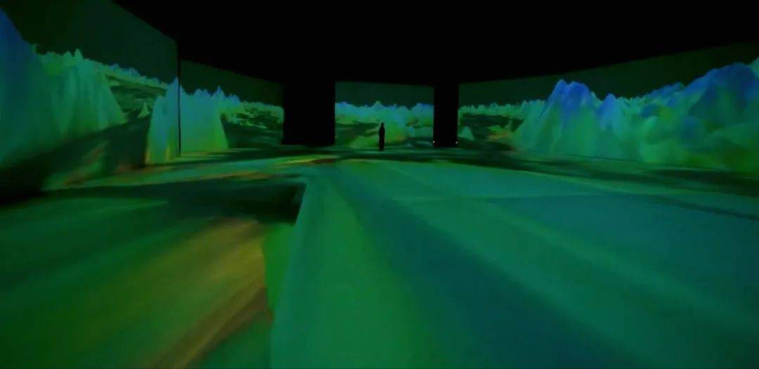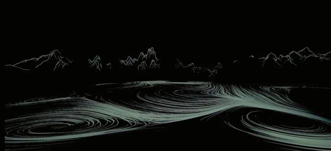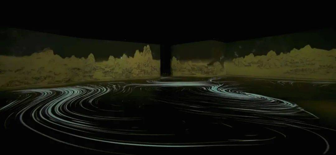 《江山新語(yǔ)》作為整個(gè)展覽的開(kāi)端,通過(guò)對(duì)《千里江山圖》從宏觀(guān)視角到沉浸視角,再到微觀(guān)視角的多維度演繹,巧妙地描繪出了一幅飽含極致東方美學(xué)的“跨時(shí)空”對(duì)話(huà)!